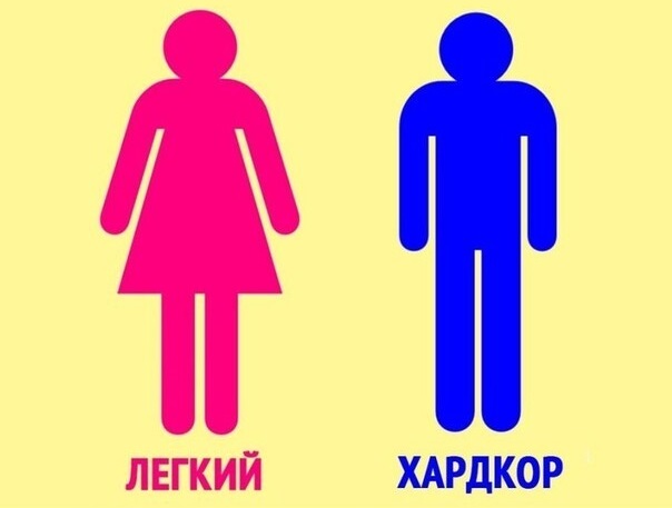 В игру под названием "жизнь" можно играть с двумя разными уровнями сложностями. Жаль, что уровень сложности назначается на старте игры рандомно и выбирать нельзя. Впрочем, разработчики в последних патчах игры добавили выбор сложности прямо в процессе игры. Обычно в мемасиках выбор уровня сложности рисуется примерно так как на картинке ниже.